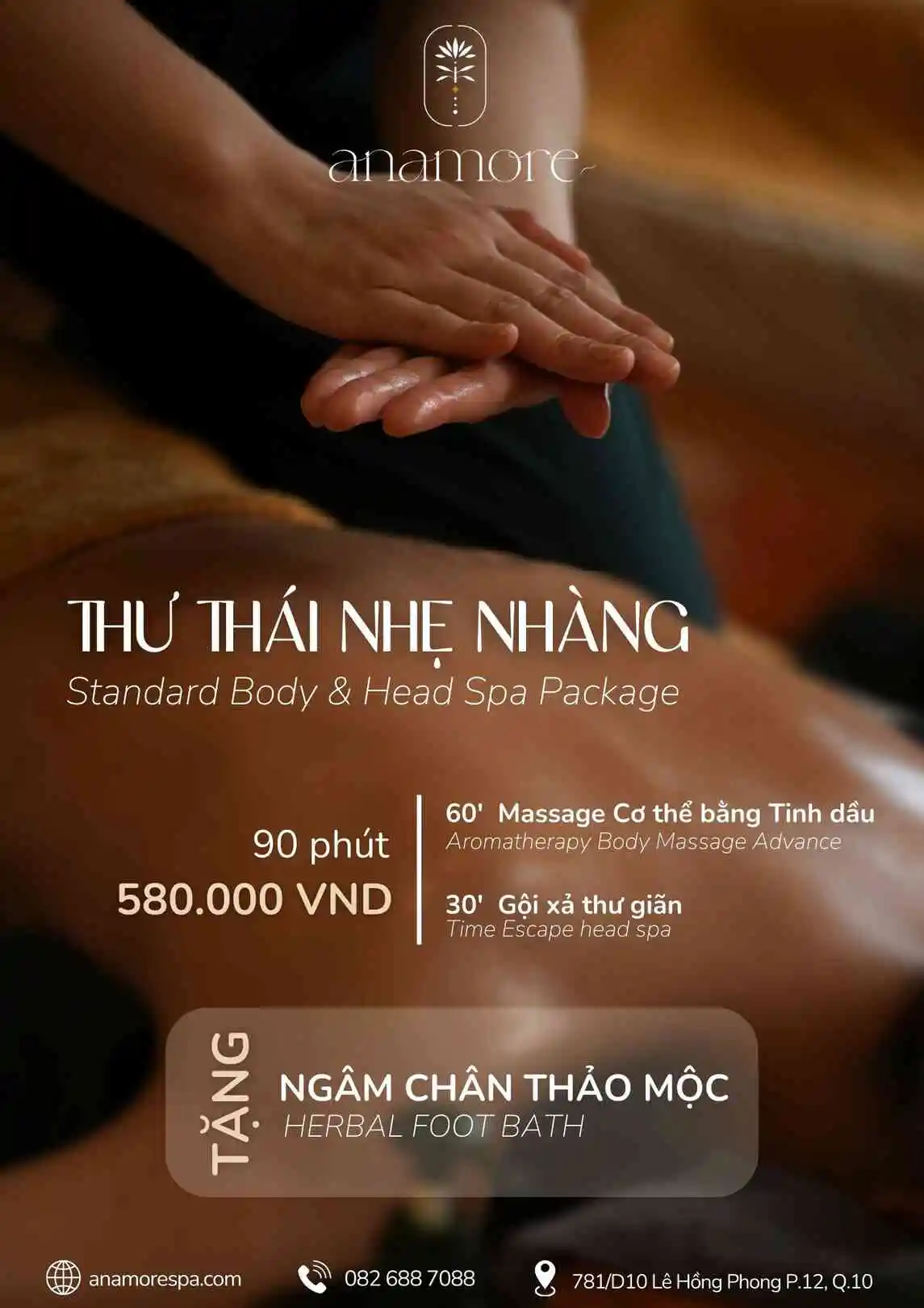 Tại Anamore Spa & Soul, mỗi khách hàng đều được nâng niu từ khi bước chân vào đến khi rời khỏi spa. Gói “Thư Thái Nhẹ Nhàng” không chỉ là 90 phút thư giãn mà còn là một hành trình tái tạo năng lượng trọn vẹn. Hãy cùng khám phá quy trình chăm sóc đặc biệt này nhé! 🌸